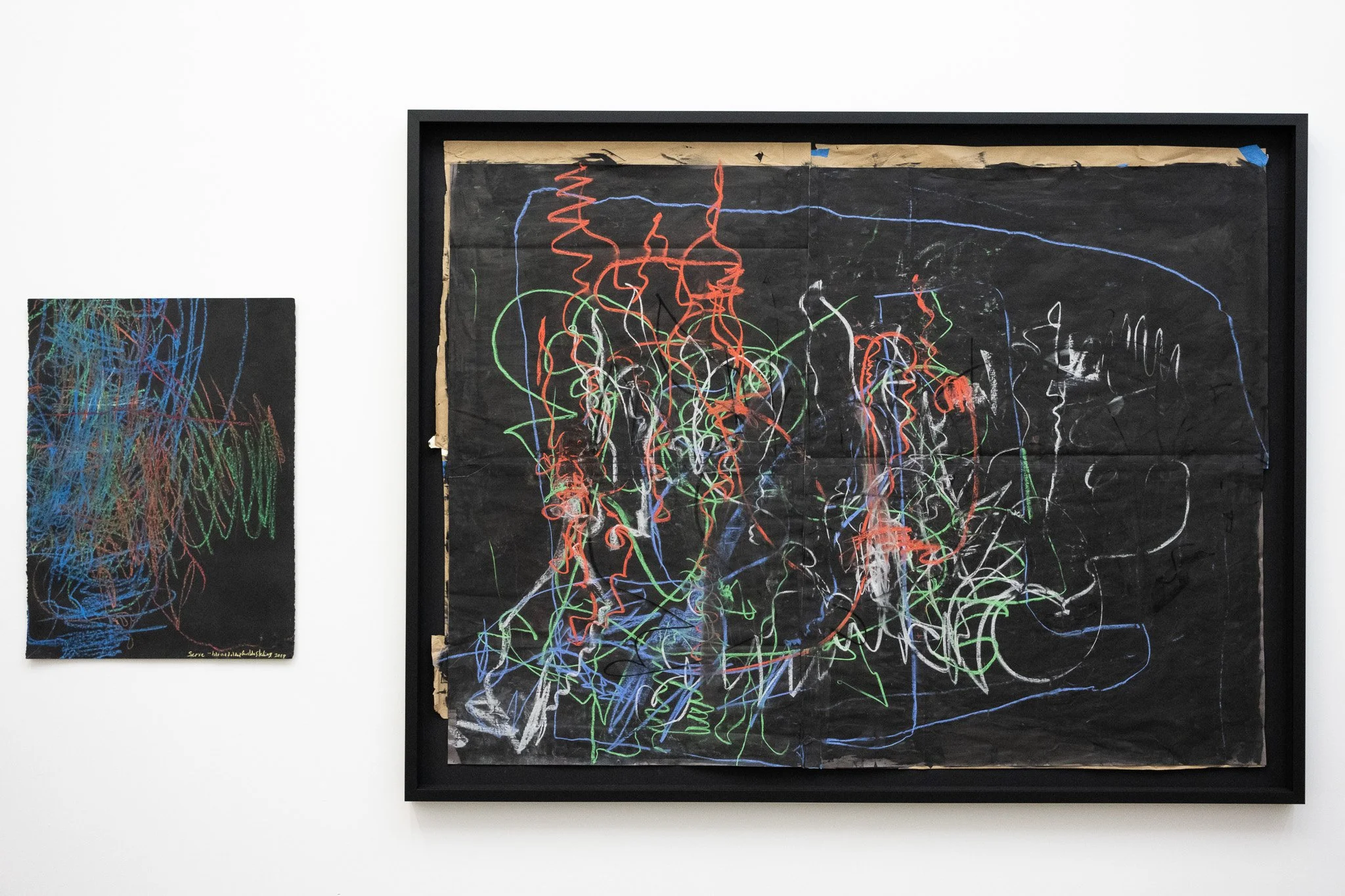 Los dibujos en esta muestra revelan regocijo, sensibilidad, y una suntuosa cadencia rítmica, que los convierte en interlocutores tácticos de saberes ancestrales. Creados al son de Maelo; a la vivacidad y melodías intuitivas del saxofonista Miguel Zenón; al júbilo ritualista del rará haitiano y del gagá dominicano; o, los barriles catárticos de la bomba, la artista interviene la superficie los soportes con una diversidad de trazos coloridos en pastel graso o pastel tiza. Sterling Duprey se transforma en una entidad que oscila entre bailarina, médium y estenógrafa, desplazando su cuerpo para inscribir sobre la superficie oscura - a modo de notación musical -, los cambios en los patrones de ritmo, armonía o timbre de la música.