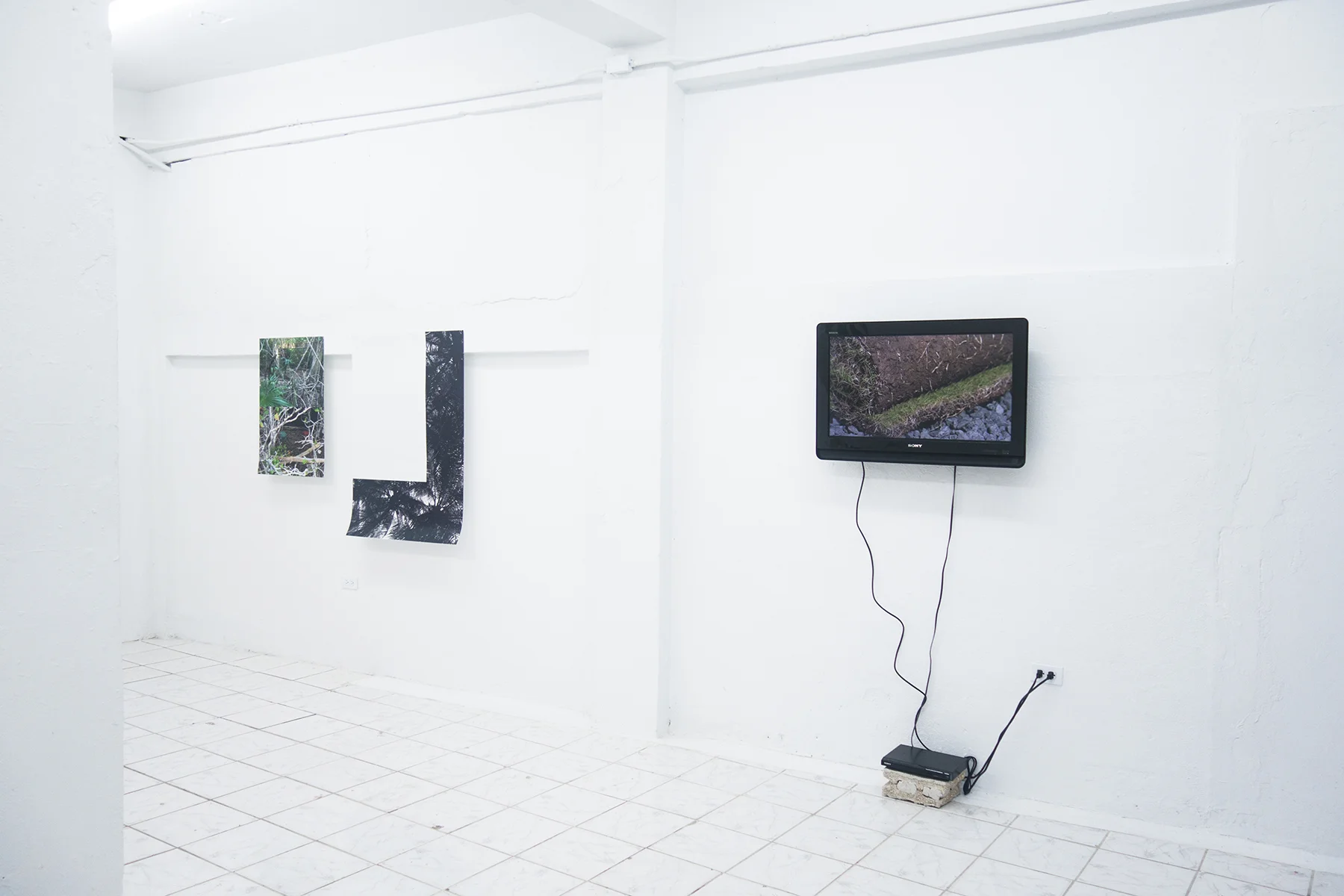 En el video Under the rug (2015), el dúo de artistas panameños Jonathan Harker y Donna Conlon construyen la idea de un pasado histórico circundado por procesos de explotación einvasión de chatarra. El video culmina con la construcción de un paisaje pulcro y bien definido que debajo esconde lo nefasto. Por su parte, Oscar Figueroa, en la acción titulada 15 nudos filma la costa desde el interior de un barril de madera en el mar a través de un orificio. Dichos barriles de madera eran utilizados para transportar trabajadores chinos que venían a América para la construcción de ferrocarriles. Cada barril tenía un orificio por el cual se alimentaba a la persona que venía dentro. 15 nudos era la velocidad promedio del trayecto entre China y América. Luisa Brandelli en su pieza Estampas (2017) (Cana-de-açúcar, Café) utiliza estampas decorativas con patrones que destacan la riqueza natural de su natal Brasil, que a su vez han sido devoradas y explotadas por la invasión colonial con fines económicos. Radamés ‘’Juni‘’ Figueroa muestra una intervención titulada ‘’Salvajismo caribeño’’ y realizada en el año 2009 en la barriada la Perla en Viejo San Juan. Además de ser el primer barrio fundado en Puerto Rico, esta comunidad ha sido marginada y estigmatizada por su cercana relación a las economías informales. Figueroa pinta los techos de algunas de estas residencias con animal prints que dejan de manifiesto la manera en que se idealiza la noción de tropicalización por quien nos visita con fines turísticos.